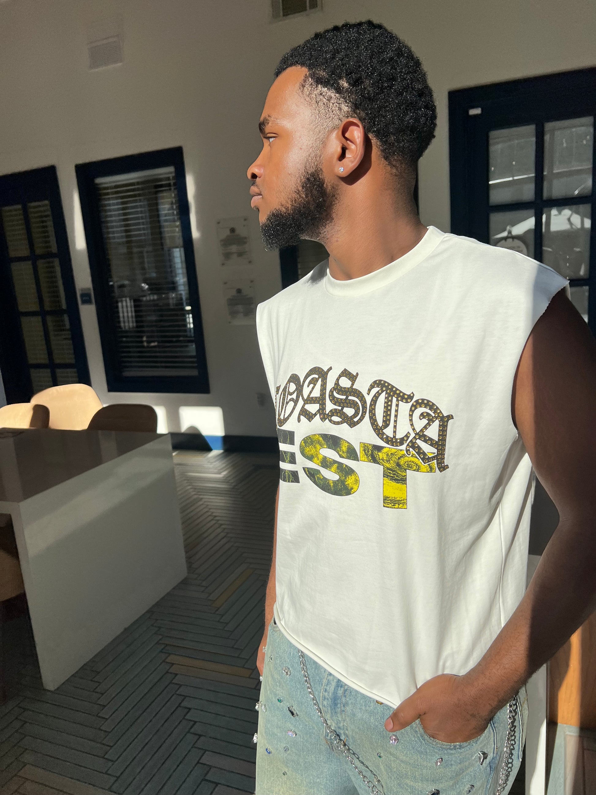 100% cotton 280 GSM T Shirt with rhinestone detail + front & back printing